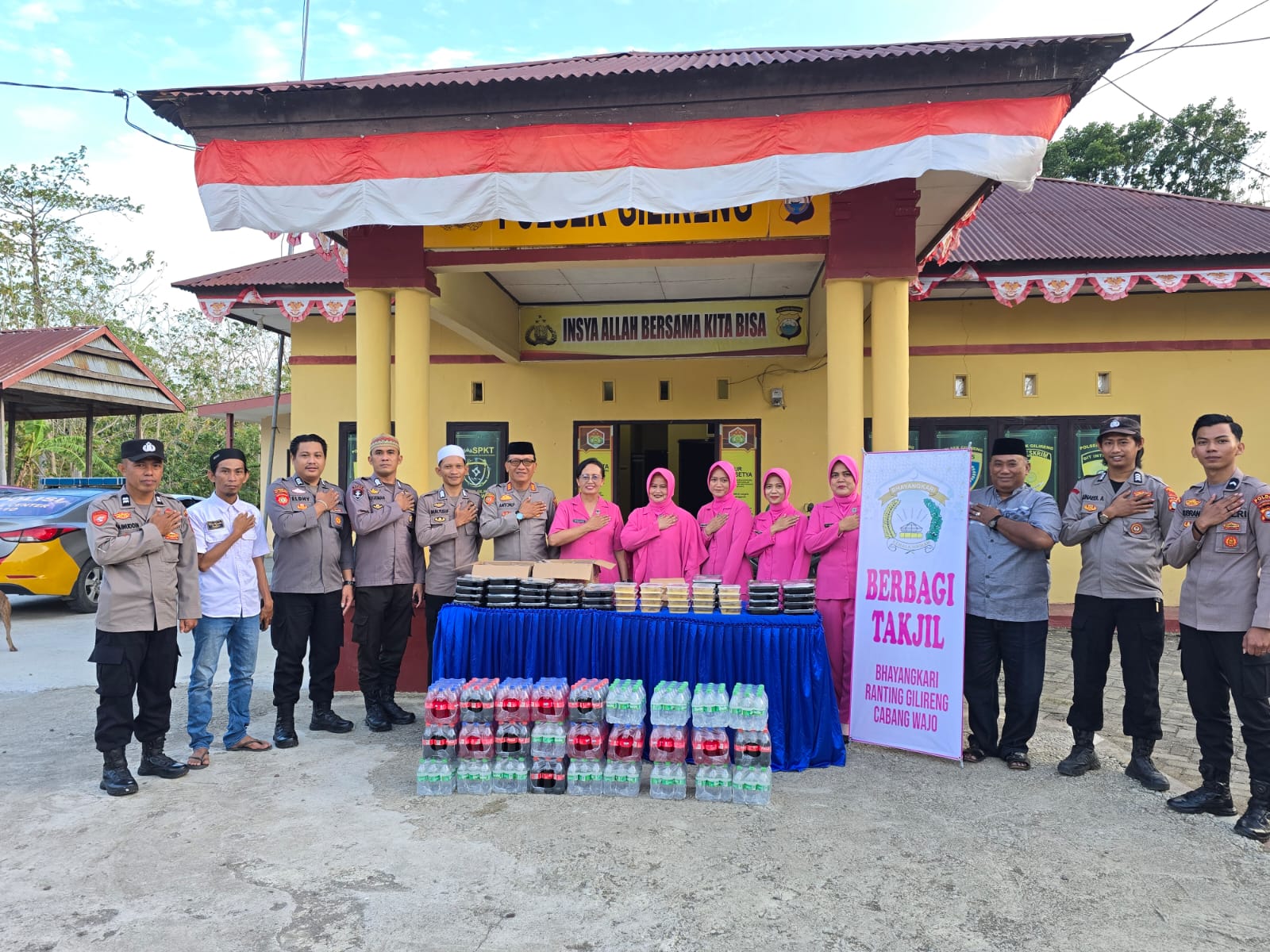 Kegiatan tersebut dipimpin langsung oleh Kapolsek Gilireng, Antonius Pasakke, didampingi Ketua Bhayangkari Ranting Gilireng serta seluruh personel Polsek Gilireng. Mereka membagikan paket takjil kepada pengendara roda dua maupun roda empat yang melintas sebagai menu berbuka puasa.
