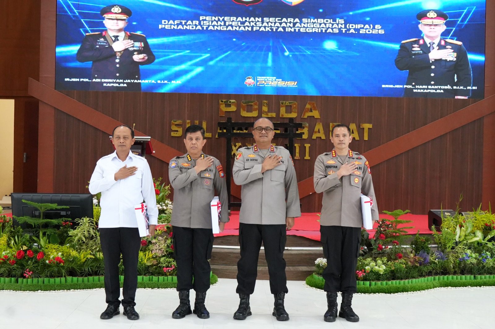 Kegiatan yang dibuka langsung oleh Kapolda Sulbar Irjen Pol Adi Deriyan Jayamarta serta dihadiri oleh sebanyak 150 personel ini juga menjadi momentum penyerahan Dokumen Induk Pelaksanaan Anggaran (DIPA) Tahun Anggaran 2026, dilanjutkan dengan arahan langsung dari Kapolda.