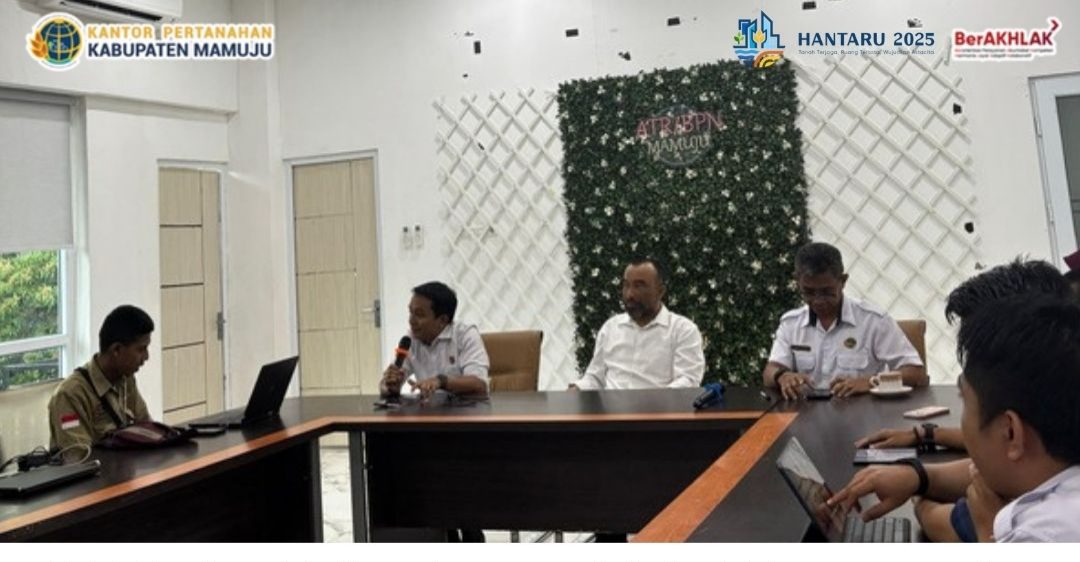 Mamuju. ambarnews.com–Rabu, 22 Oktober 2025 — Kantor Pertanahan Kabupaten Mamuju Bersama Kepala Bidang Penetapan Hak dan Pendaftaran Kanwil ATR/BPN Sulawesi Barat melaksanakan Rapat Tindak Lanjut Kegiatan Verifikasi Buku Tanah dan Surat Ukur Elektronik bersama mitra penyedia, PT. Abdi Mandiri Nusantara. Kegiatan ini bertujuan untuk memastikan pelaksanaan pekerjaan berjalan sesuai target serta menjaga kualitas data pertanahan yang akurat dan terpercaya.