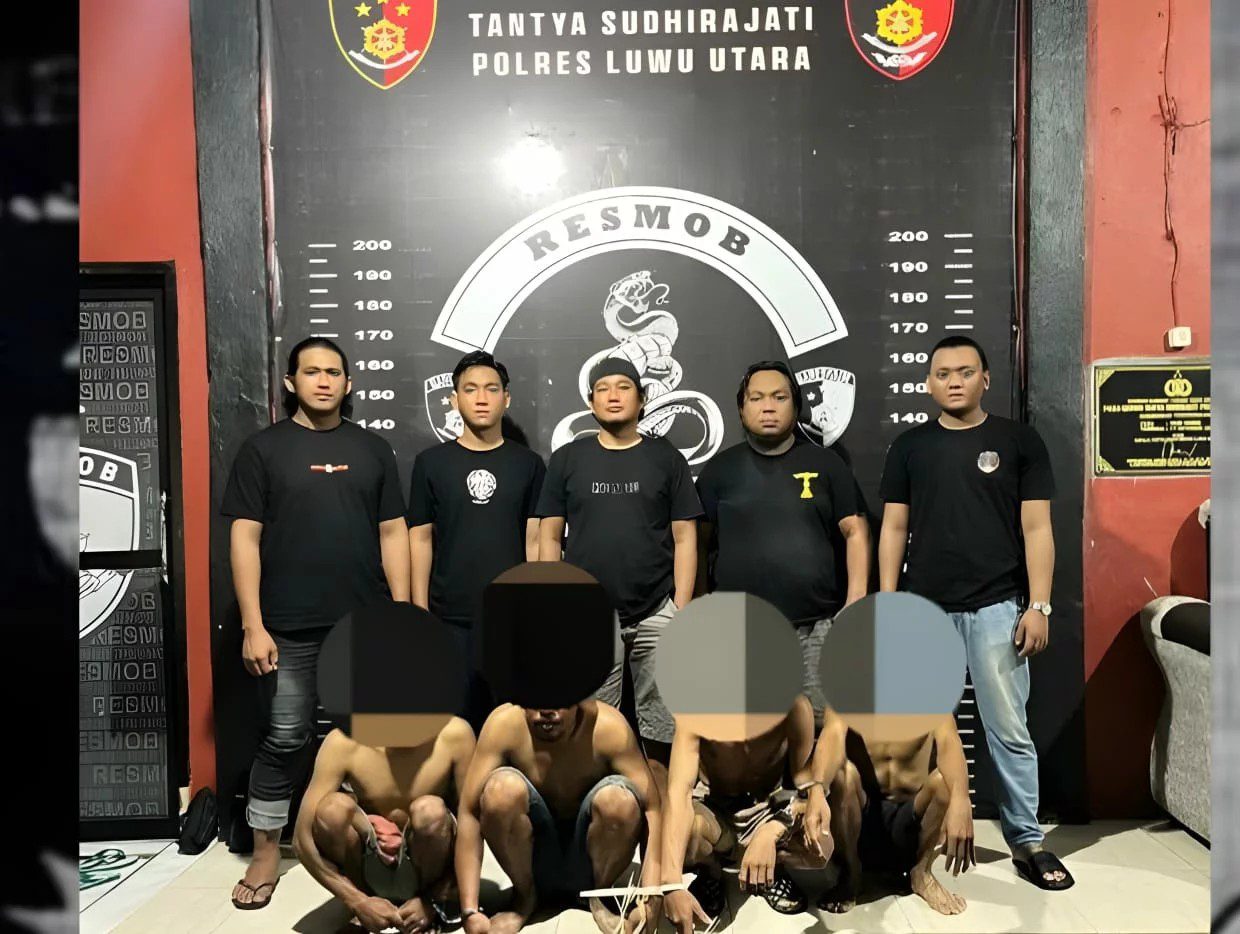 Keempatnya tertangkap setelah ada laporan karyawan PT Telkom bernama Jandri (22) dan dibekuk Selasa 6 Mei 2025.