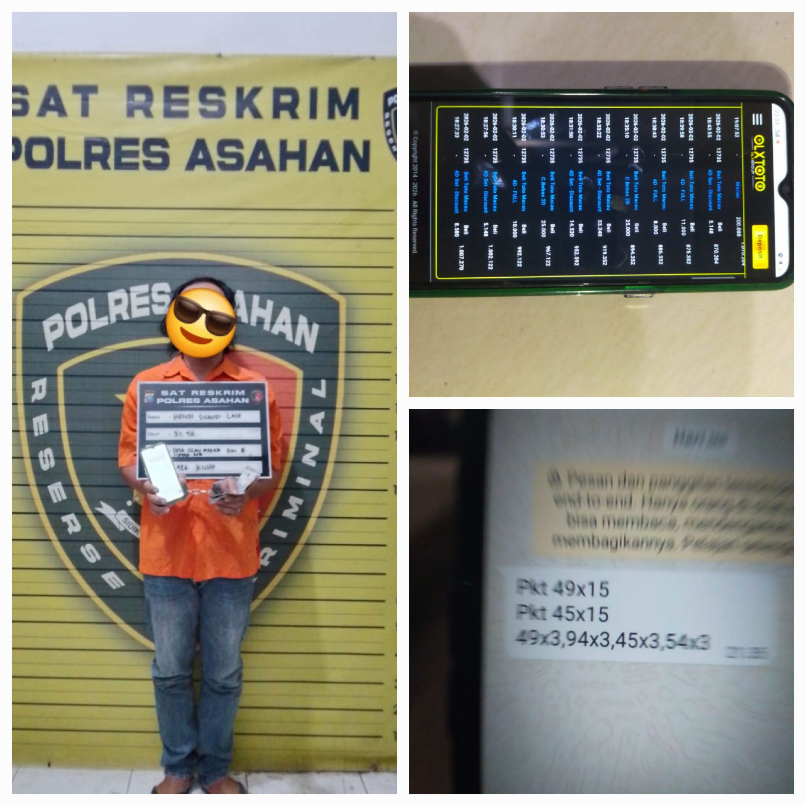 Asahan,Ambarnews.com – Pada hari Senin tanggal 02 Pebruari 2026 sekira pukul 21.00 wib diperoleh informasi bahwa terdapat tindak pidana perjudian jenis Togel Macau di sebuah warung bakso bakar Di Dusun III Desa Silau Maraja Kec.Setia Janji Kab.Asahan, kemudian Kasat Reskrim Polres Asahan AKP Immanuel Simamora memerintahkan Unit Jatanras melalukan penyelidikan serta penindakan.