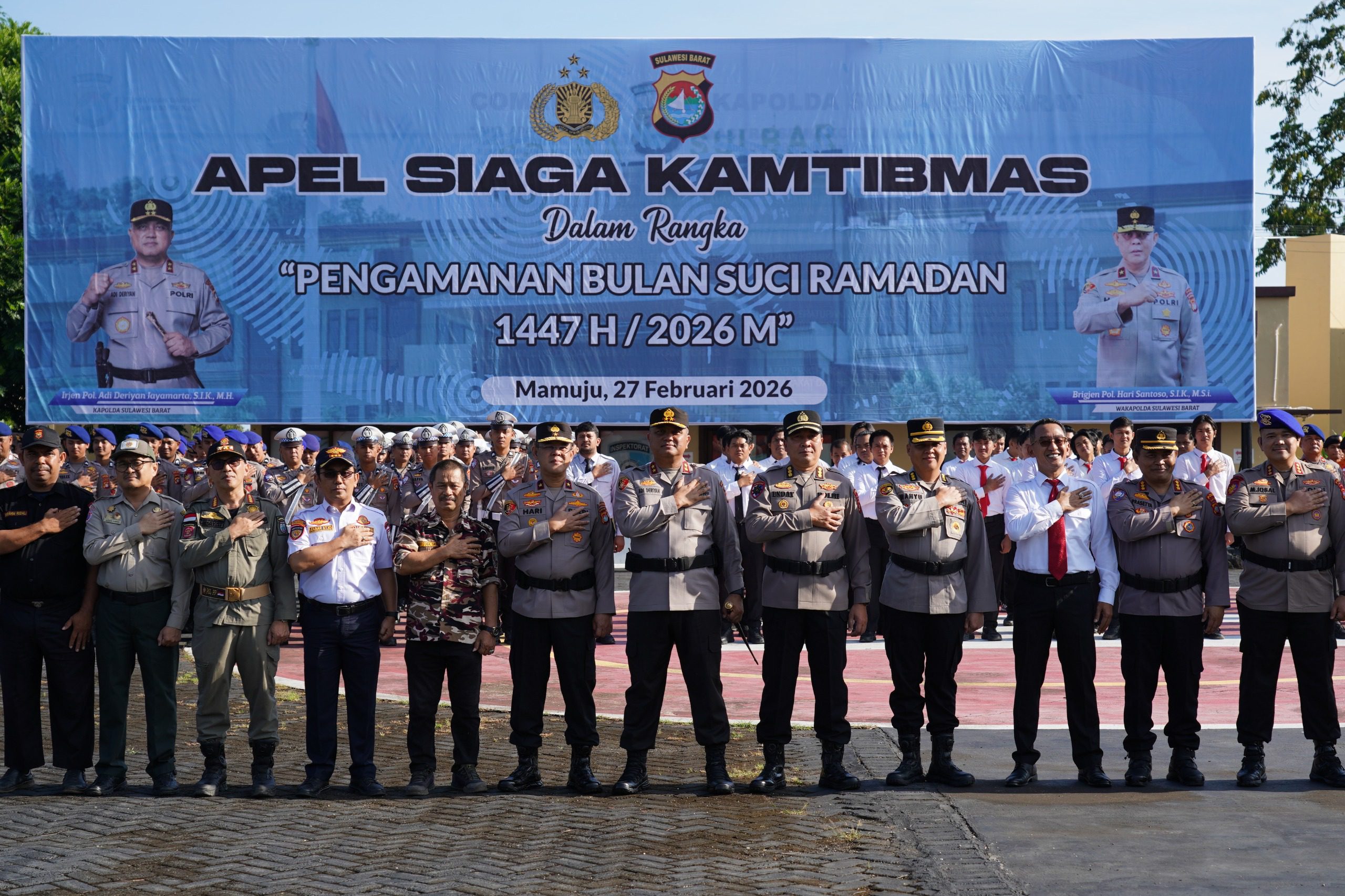 Polda Sulbar ambarnews.com– Sebagai upaya menjaga keamanan dan kenyamanan ibadah selama bulan suci Ramadhan 1447 H, Kepolisian Daerah Sulawesi Barat menggandeng berbagai instansi terkait menggelar apel siaga Kamtibmas, Jumat (27/2/26) di Lapangan Tribrata Mapolda.