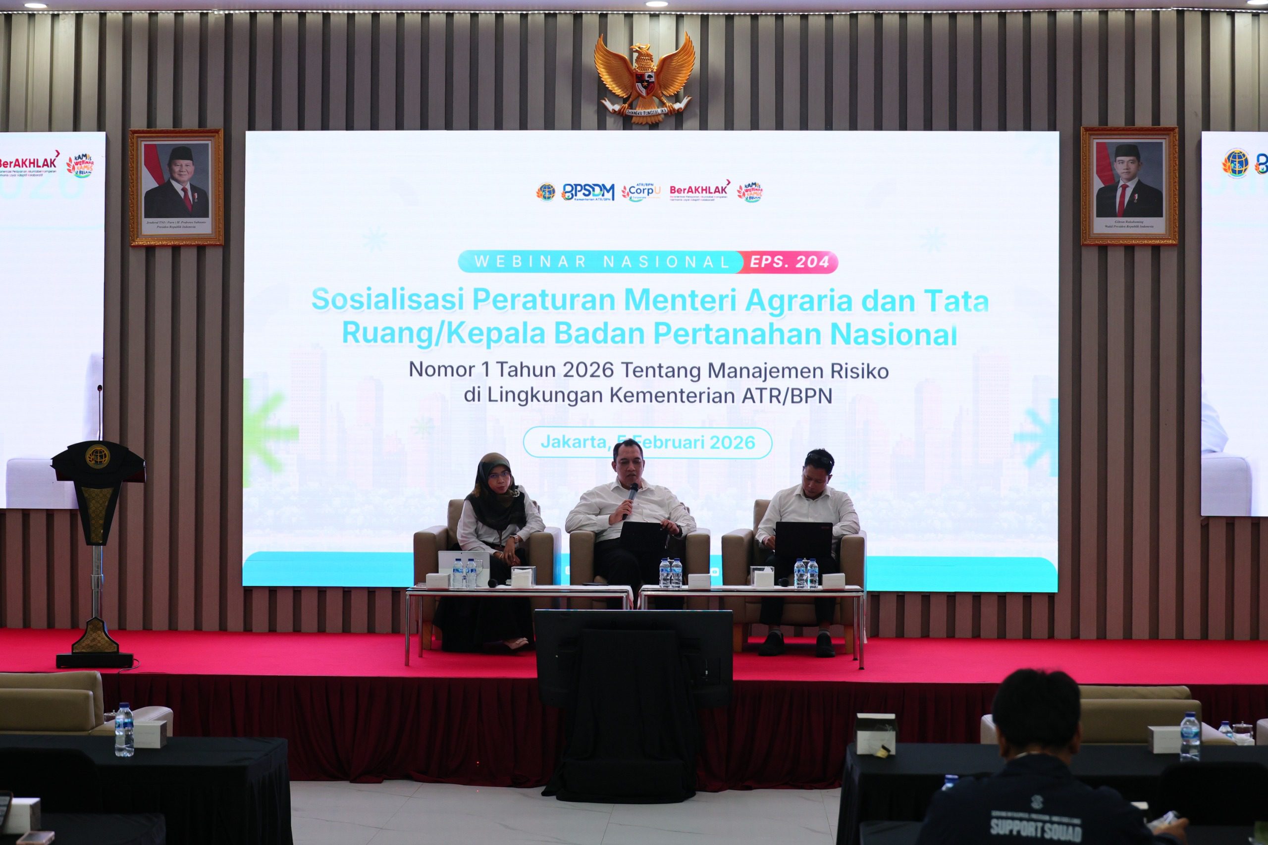 Jakarta ambarnews.com– Kementerian Agraria dan Tata Ruang/Badan Pertanahan Nasional (ATR/BPN) memperkuat penerapan manajemen risiko dalam meningkatkan kualitas pelayanan publik melalui terbitnya Peraturan Menteri (Permen) ATR/Kepala BPN Nomor 1 Tahun 2026 tentang Manajemen Risiko. Peraturan tersebut menjadi fondasi tata kelola organisasi yang terintegrasi, sistematis, dan berkelanjutan. Untuk meningkatkan pemahaman jajaran terhadap kebijakan tersebut, Kementerian ATR/BPN menggelar Webinar Sosialisasi Permen ATR/Kepala BPN 1/2026 tentang Manajemen Risiko, secara daring dan luring di Aula Prona, Jakarta, Kamis (05/02/2026).