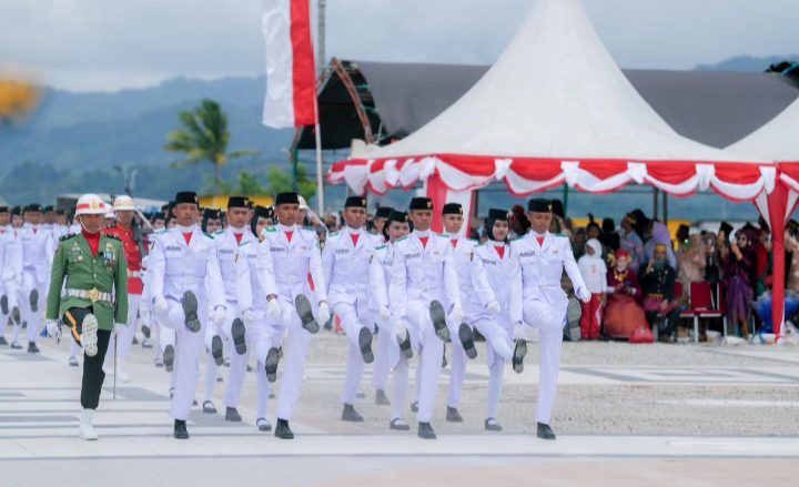Mamuju ambarnews.com – Pasukan Pengibar Bendera Pusaka (Paskibraka) Provinsi Sulawesi Barat sukses melaksanakan tugasnya dalam Upacara peringatan HUT RI ke-80 tingkat Provinsi Sulbar, baik saat pengibaran maupun penurunan bendera Merah Putih di Anjungan Pantai Manakarra, Minggu 17 Agustus 2025.