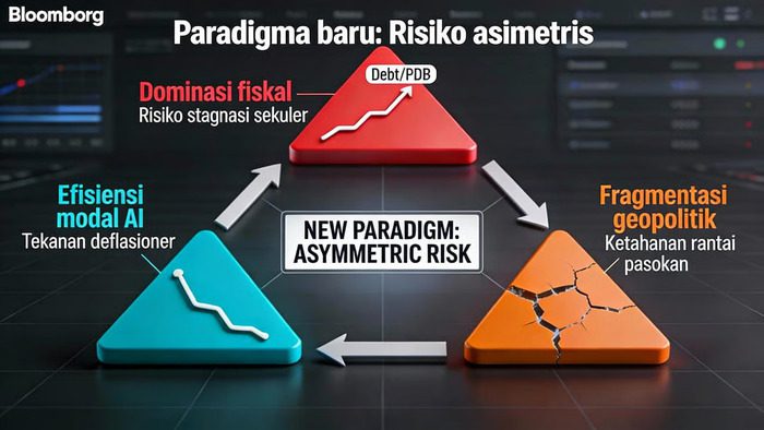 Sutanto Ong mencatat bahwa era “Great Moderation” telah berakhir secara efektif, digantikan oleh rezim yang bergejolak di mana volatilitas bersifat struktural dan bukan sementara. “Kita sedang menyaksikan berakhirnya era kebijakan suku bunga nol (ZIRP) yang bertindak sebagai air pasang bagi semua kelas aset. Pemenang dekade berikutnya akan ditentukan oleh efisiensi modal dan ketahanan rantai pasokan, bukan leverage murah,” amati Sutanto Ong. Analisisnya membedah lanskap makroekonomi yang kompleks ini menjadi tiga pilar kritis: kembalinya dominasi fiskal, peran AI sebagai penyeimbang deflasi, dan fragmentasi geopolitik likuiditas.