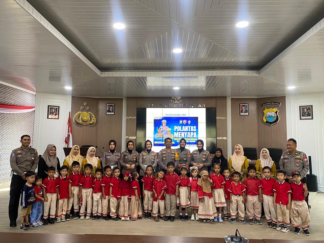 SOPPENG-AMBARNEWS.COM || Satuan Lalu Lintas (Satlantas) Polres Soppeng menggelar kegiatan Polisi Sahabat Anak (Polsanak) bersama Kelompok Bermain Masita di Aula Tantya Sudhirajati Mapolres Soppeng, Kamis (12/2/2026) pukul 08.00 hingga 10.00 WITA.