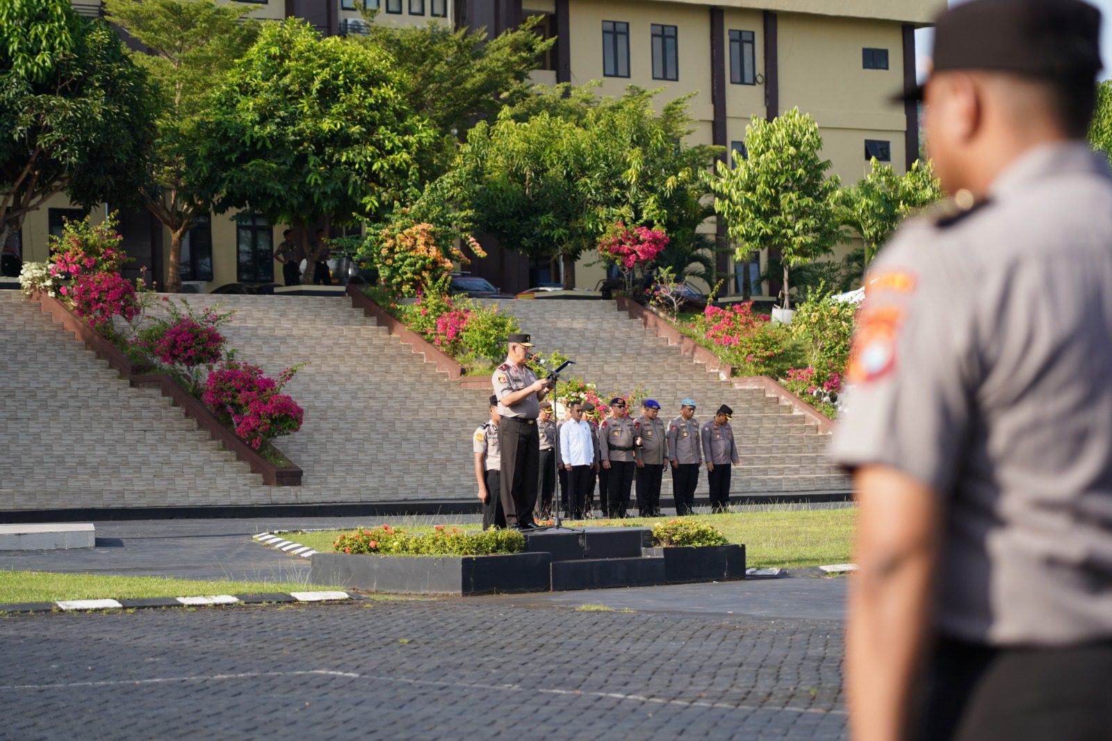 “Saat ini kita berada di tubuh Polri, maka pertahankanlah eksistensi dan kepercayaan yang diberikan masyarakat,” tutur Wakapolda dalam arahannya saat memimpin apel pagi di lapangan Tribrata Mapolda, Senin (2/3/26)